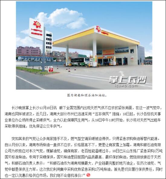 近幾日,湖南部分市州已迅速采取“壓非保民”措施,停止了眾多商家及出租車的燃?xì)夤?yīng)。突如其來的氣荒讓大家措手不及。為了確保市場(chǎng)供油穩(wěn)定,讓星城人民溫暖過冬,順暢出行,和順石油積極應(yīng)對(duì),從山東緊急采購(gòu)2萬噸國(guó)VI標(biāo)準(zhǔn)柴油,專門用于市場(chǎng)保供,切實(shí)履行企業(yè)社會(huì)責(zé)任,同時(shí)以優(yōu)惠價(jià)格供應(yīng)市場(chǎng),絕不借機(jī)漲價(jià)。